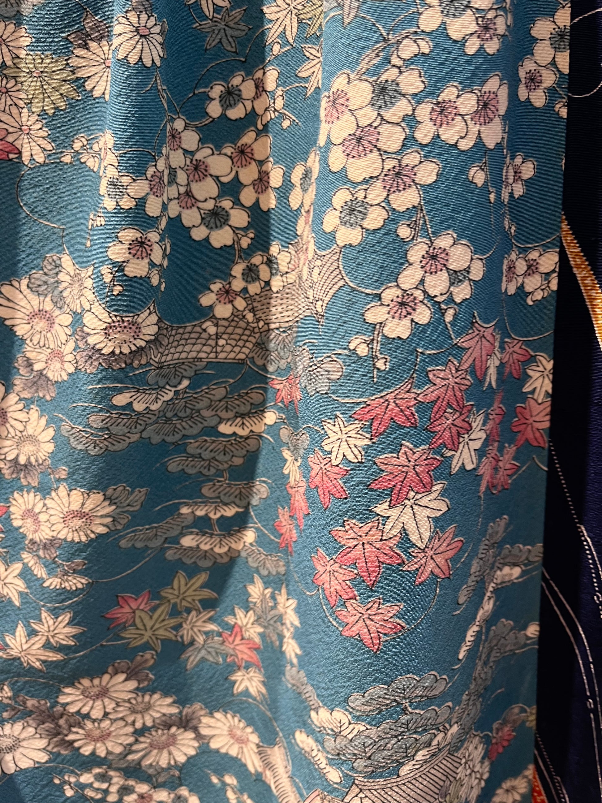 Multi-colored colors are matched with the image of navy blue flowers.