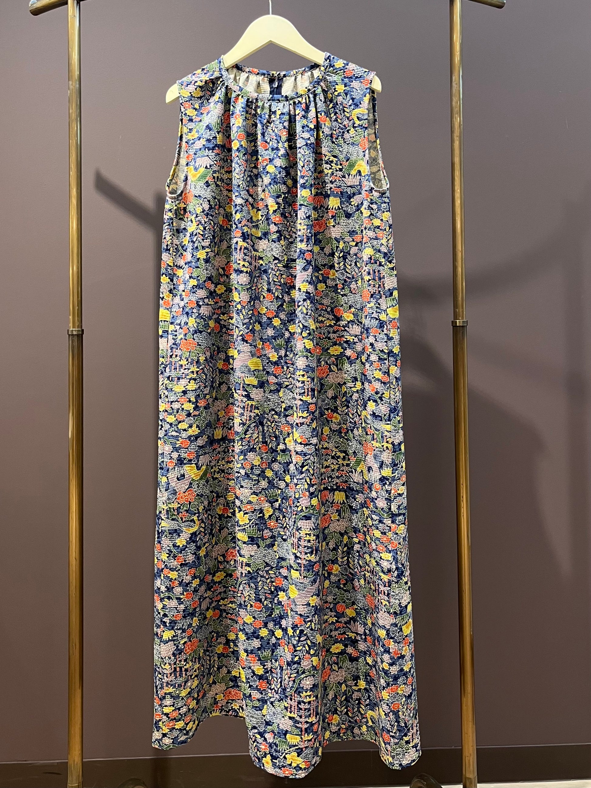 胸元にギャザーがたっぷり入っているので表情が明るく見え、足元にはスリットが入っているので足さばきも楽に。