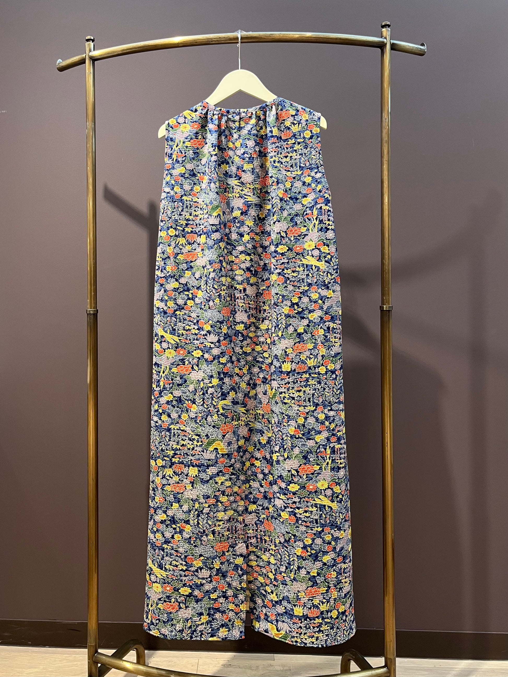 染め直しの着物からお作りした紺にカラフルな古典柄の小紋。