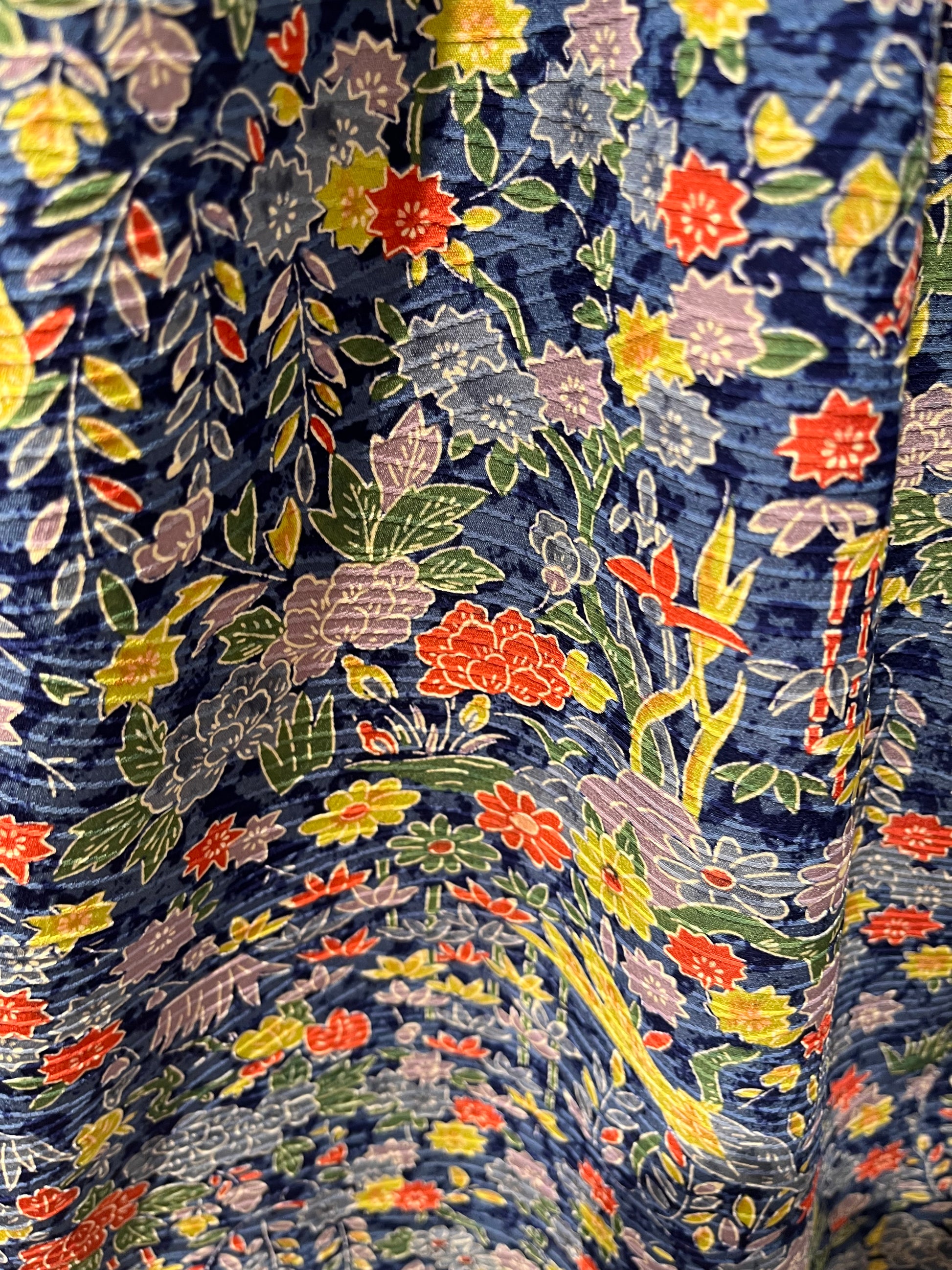 A colorful, classic patterned pattern made from a re-dyed kimono.