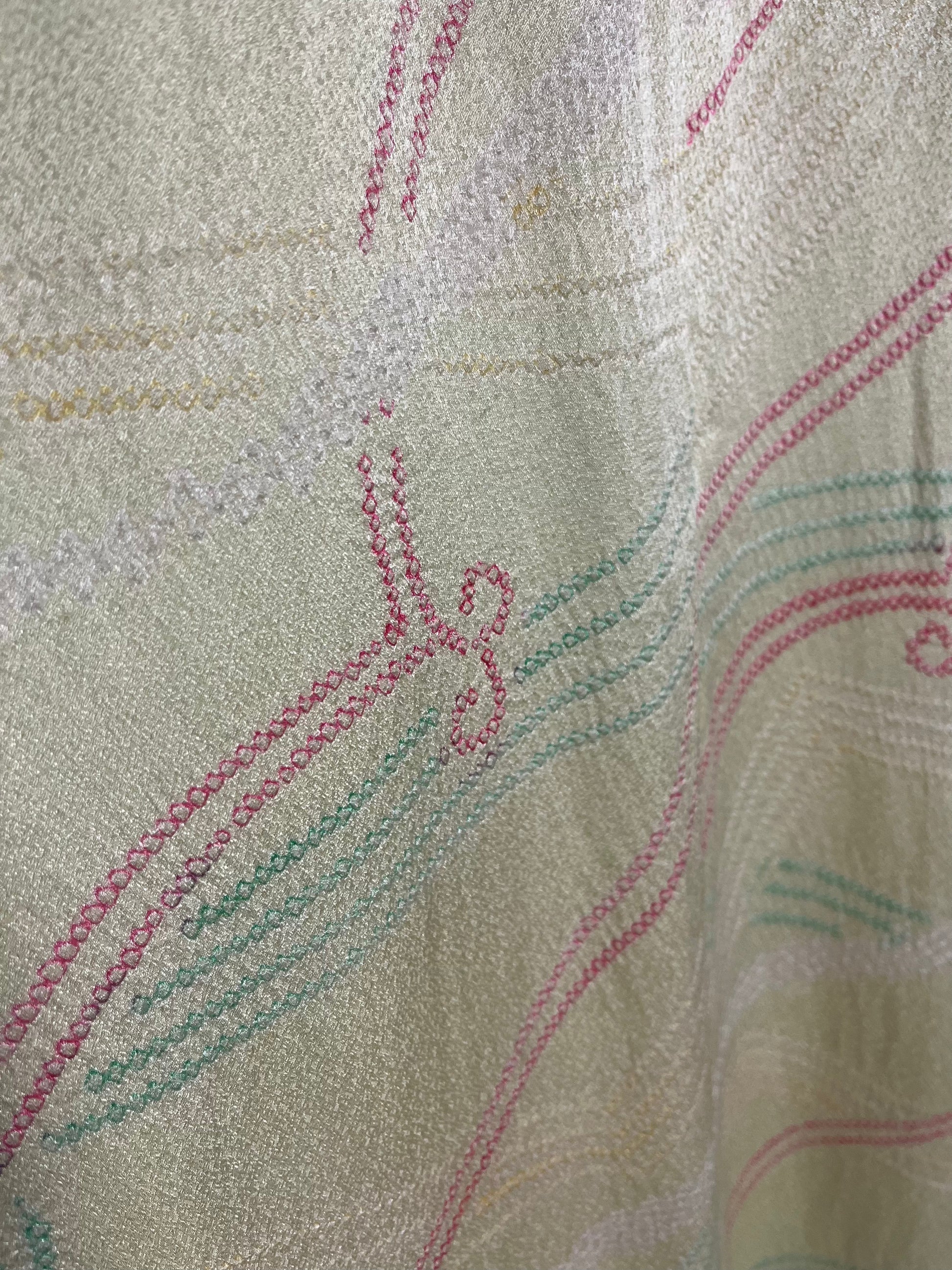 光沢もありながら絞りの柄が可愛らしく彩られた一枚。