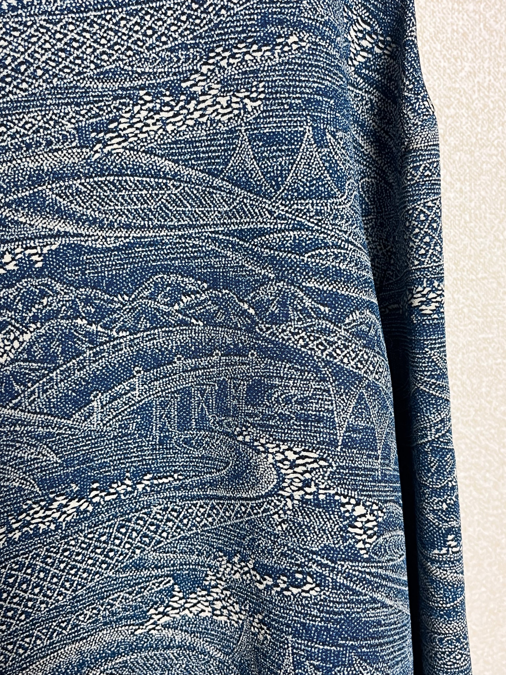 着物1反からパンツやワンピースなどの大きなアイテムを仕立てたあとに残る生地を活かして作った、カーディガンです。