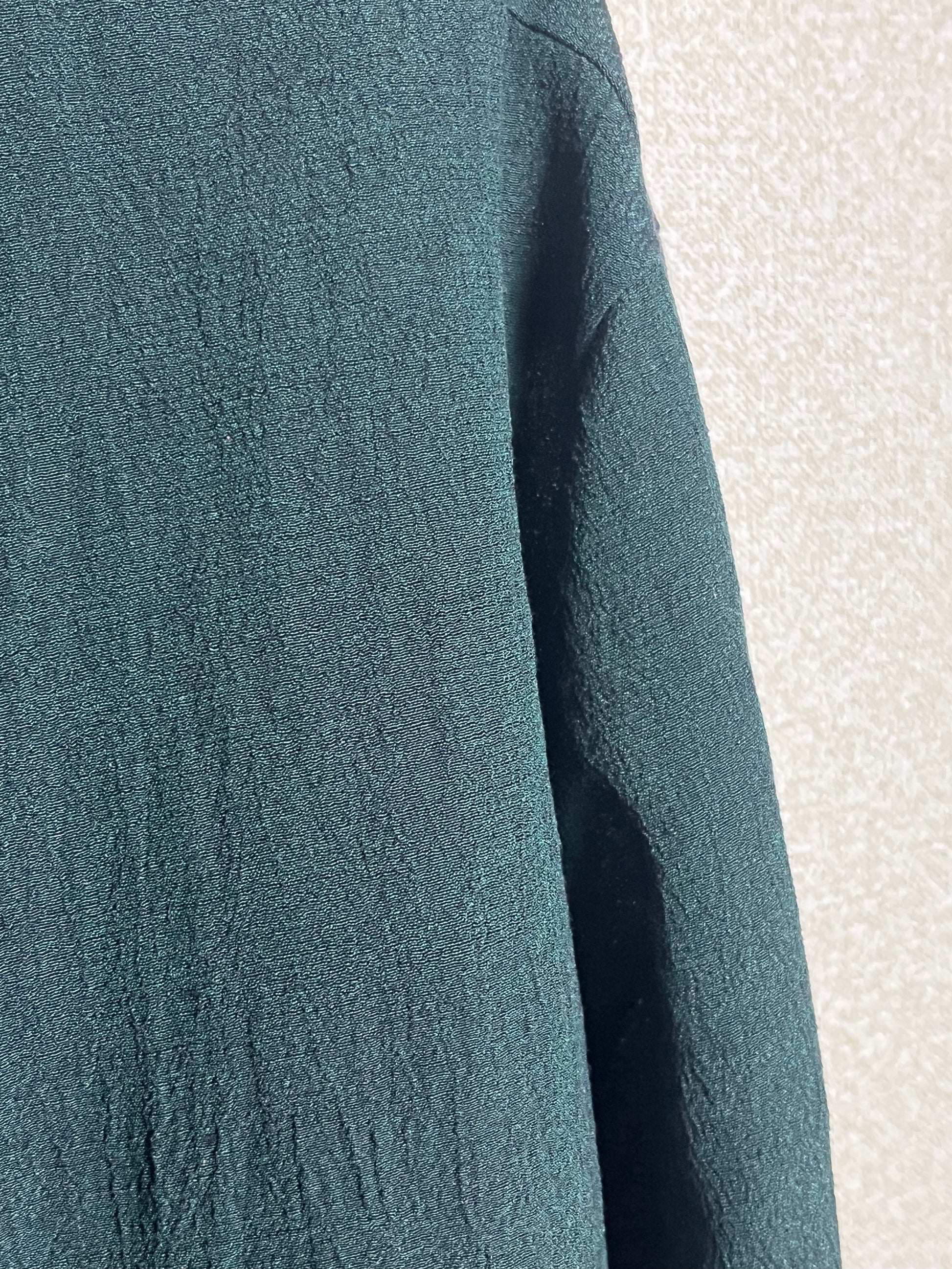 深い緑の色無地で、麻混のシャリ感のある素材です。