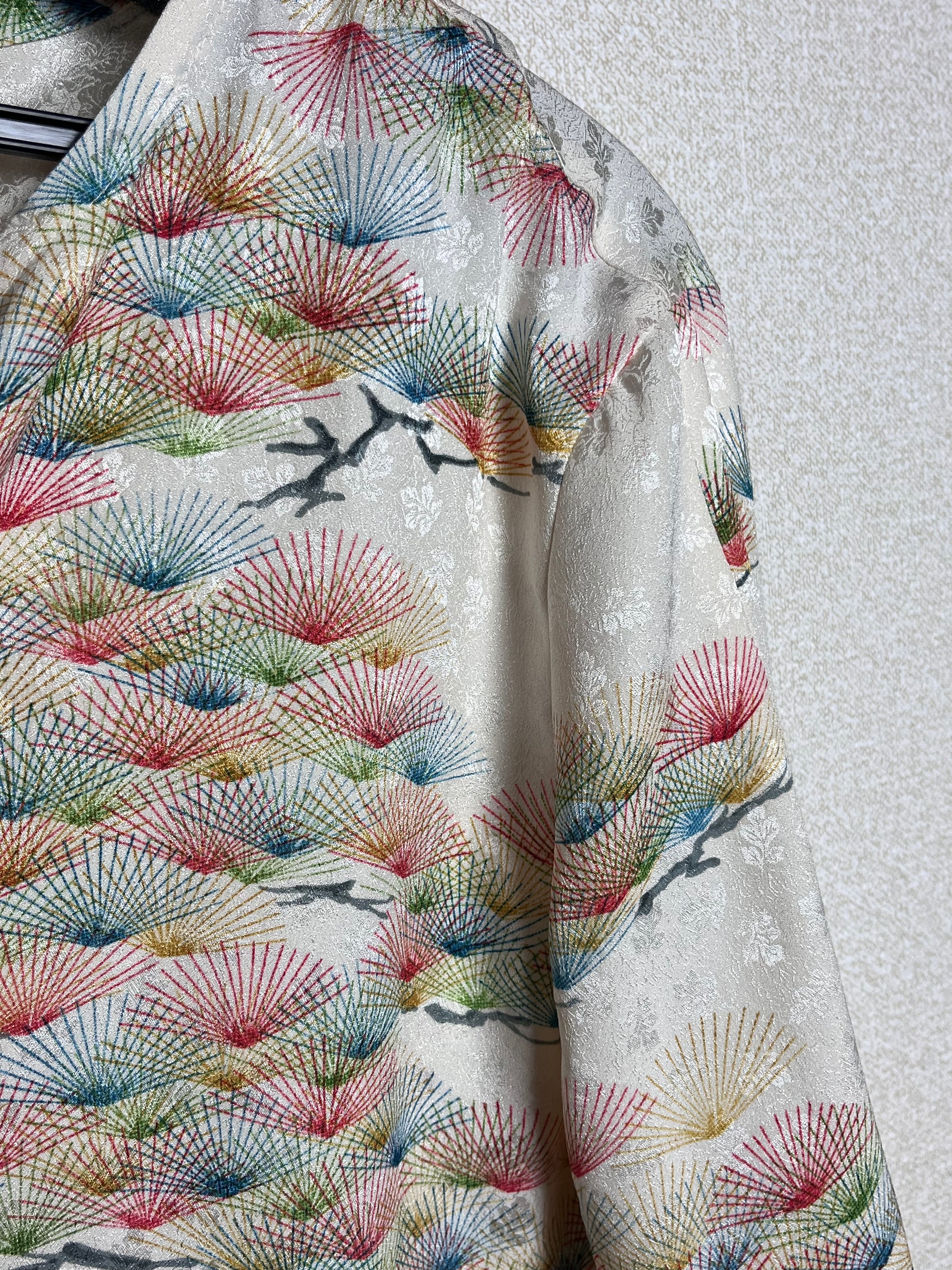 白地にColorfulな松の葉が大胆に描かれた1枚。