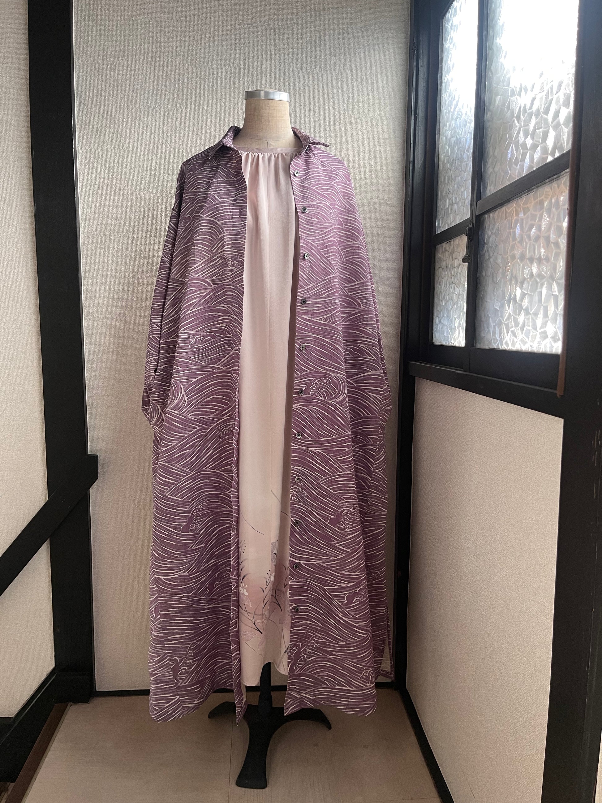 ほぼ着物1着分を使用しお作りするボリュームたっぷりのロングシャツ。